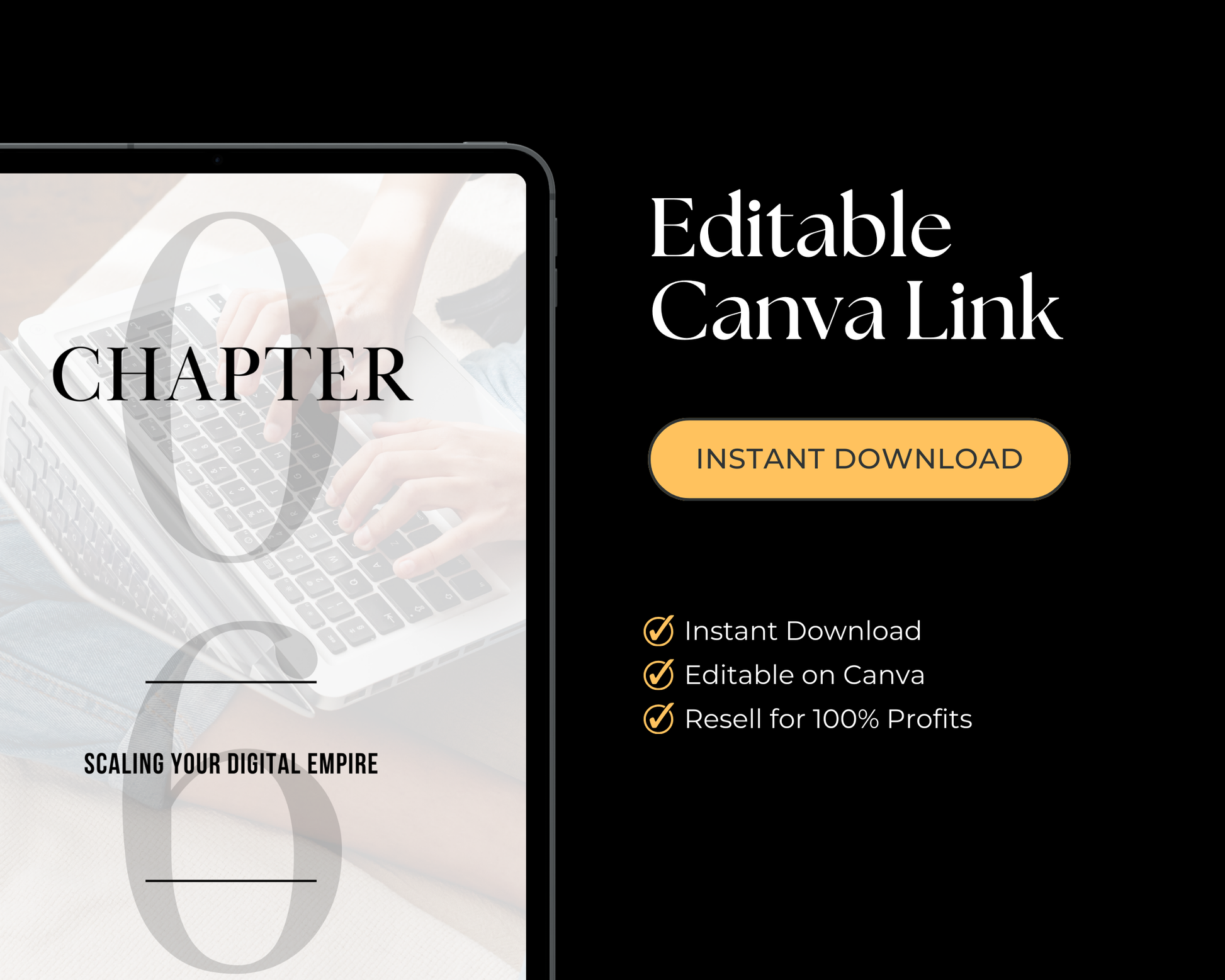 With this eBook, you'll receive a Canva editable link (works with a free Canva account!), allowing you to customize and personalize the 24 pages effortlessly. Simply add your brand colours, your brand name and export as PDF to start selling in minutes.