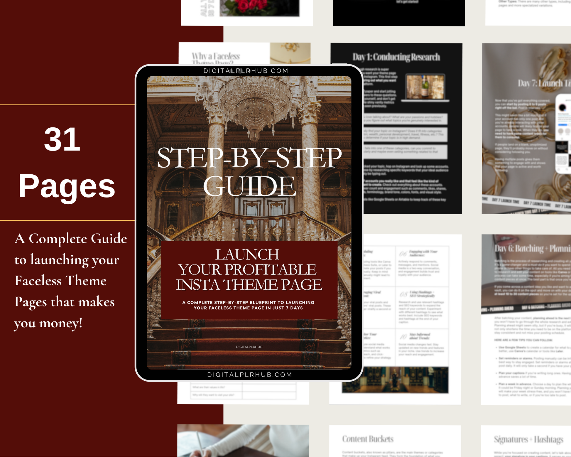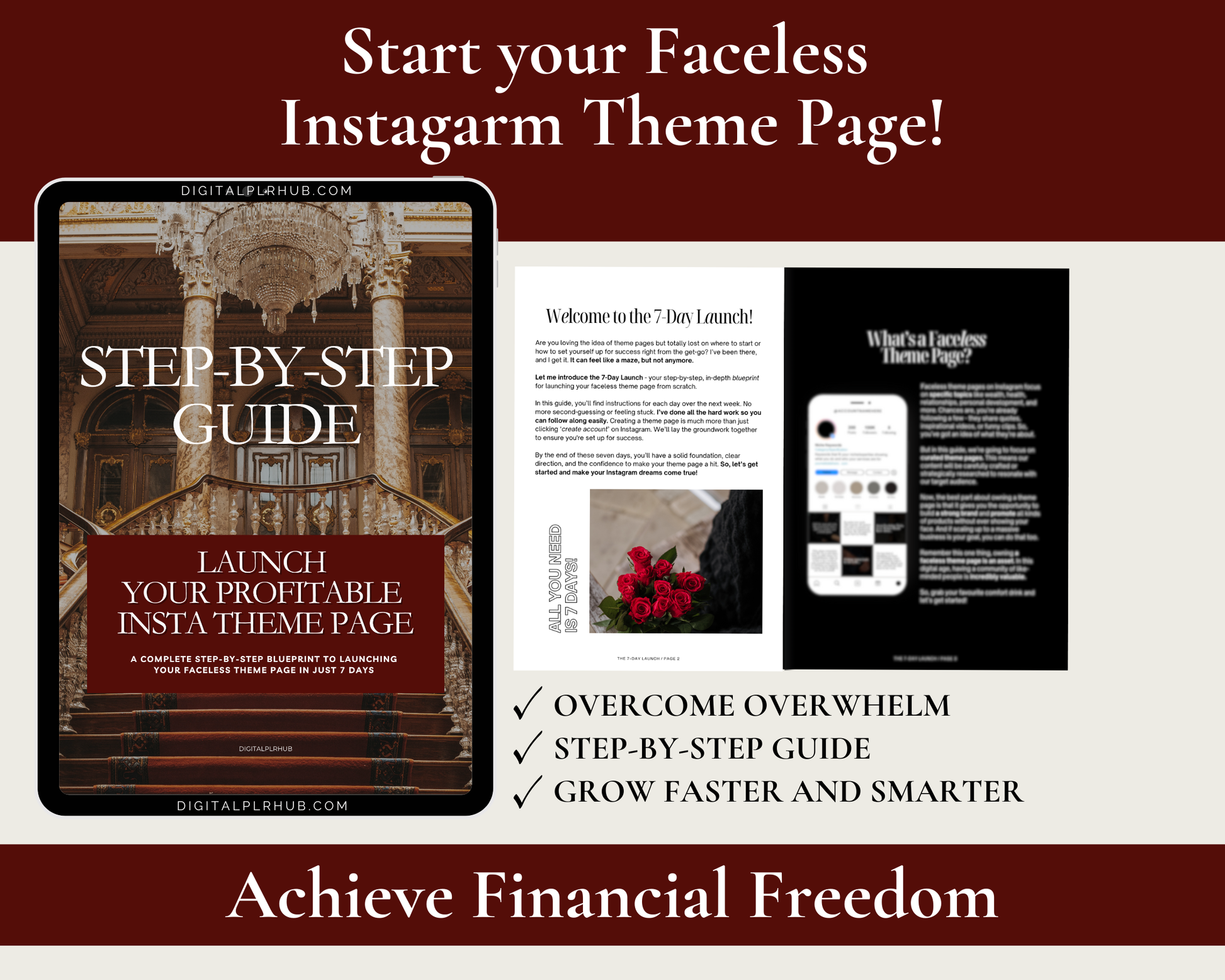 Want to build a thriving Instagram theme page without showing your face? Whether you're an aspiring entrepreneur or a social media newbie, our 7-Day Launch Guide is your go-to resource for creating a successful, faceless theme page—no experience, no followers, no problem!