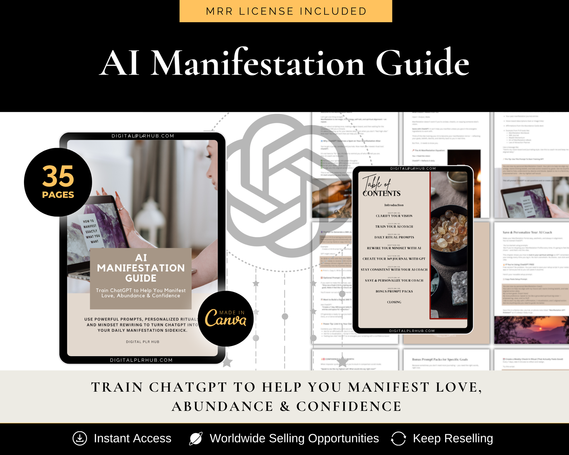 Teach ChatGPT to be your manifestation coach. Fully editable, MRR licensed, and wildly unique.