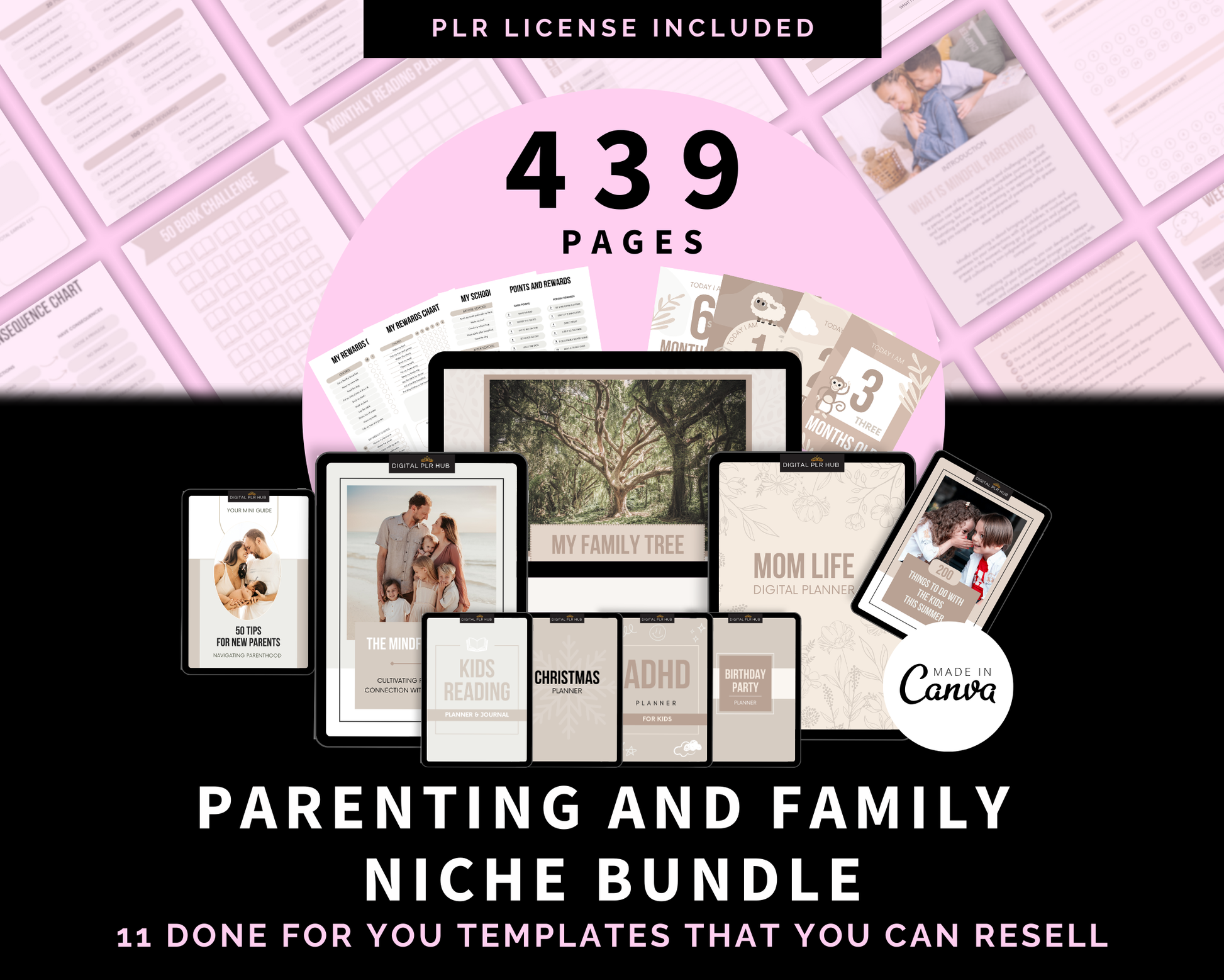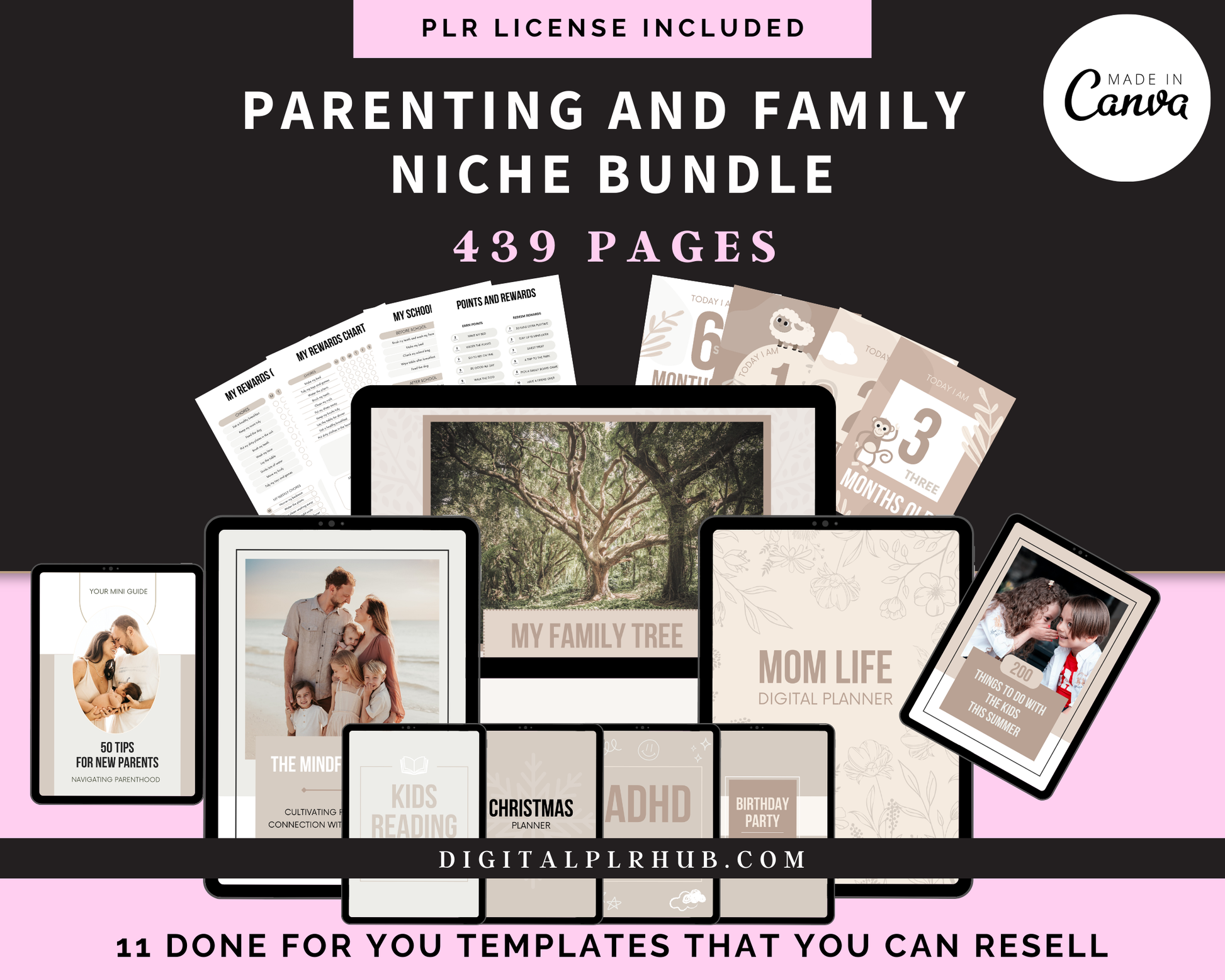 When you purchase our PLR Parenting and Family Niche Bundle, you get instant access to 11 trending products with 439 template pages that you can edit, customize, and resell as your own and keep 100% profit!