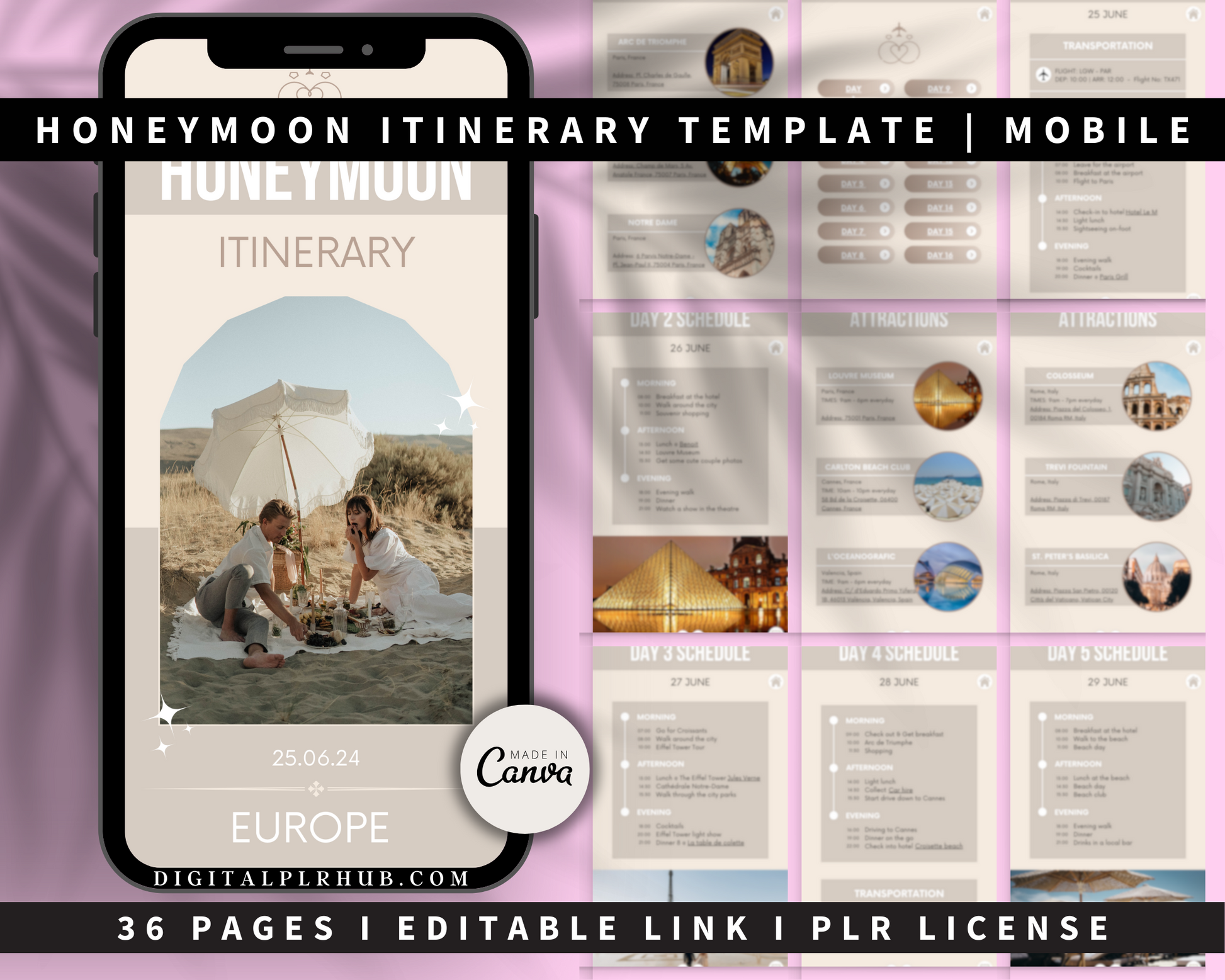 6# Honeymoon Itinerary Template | Mobile (36 Pages)