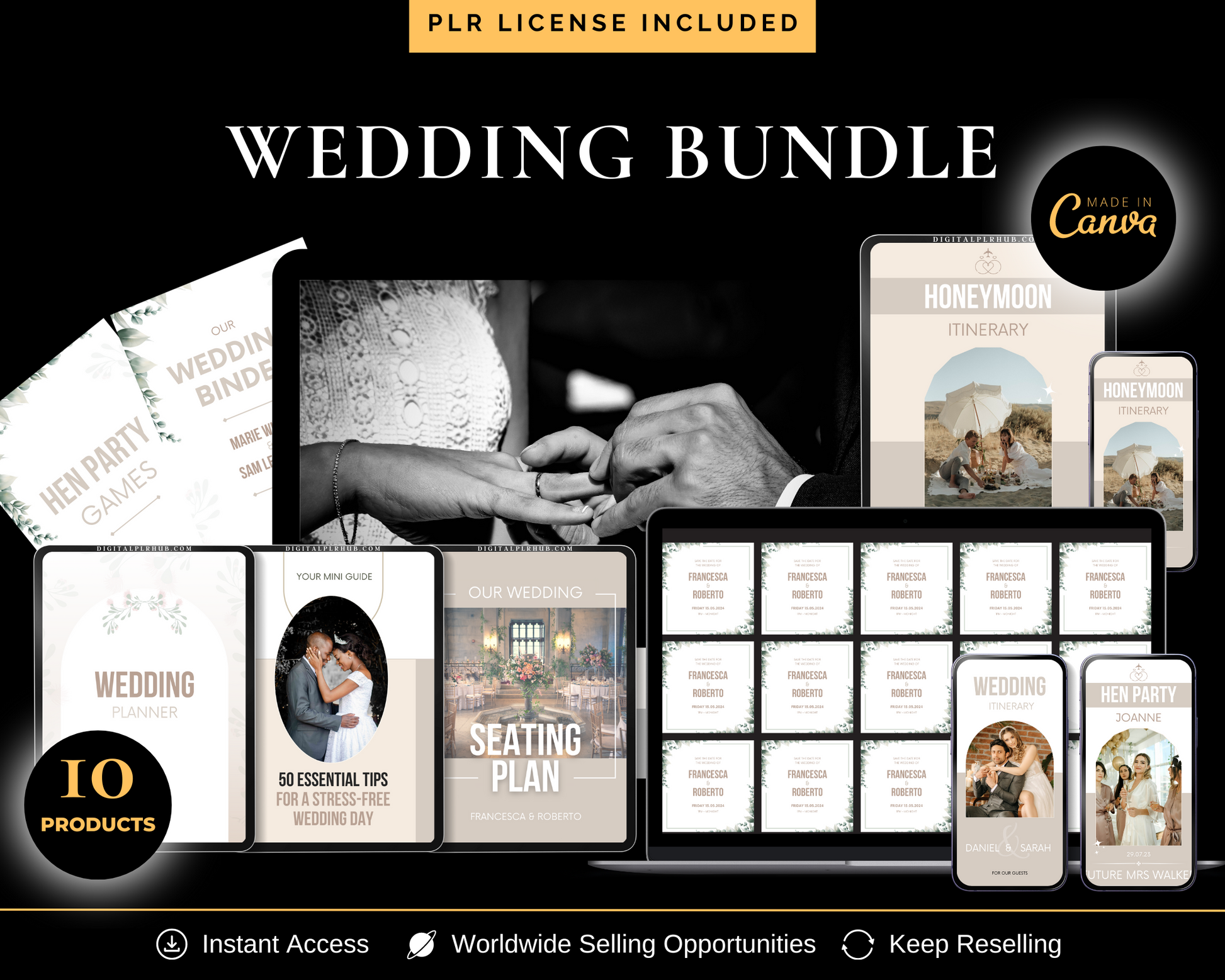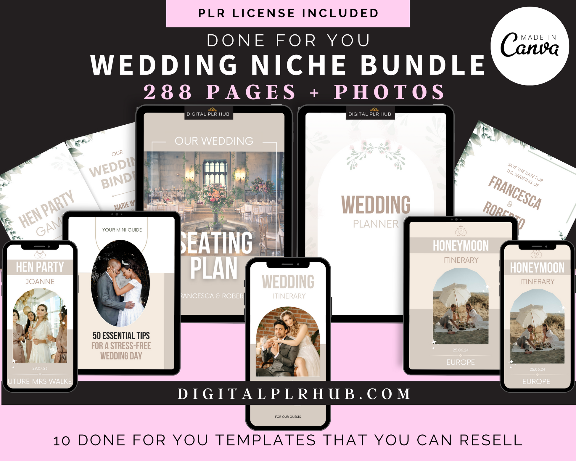 When you purchase our PLR Wedding Niche Bundle, you get instant access to 10 trending products with 288 template pages that you can edit, customize, and resell as your own and keep 100% profit!